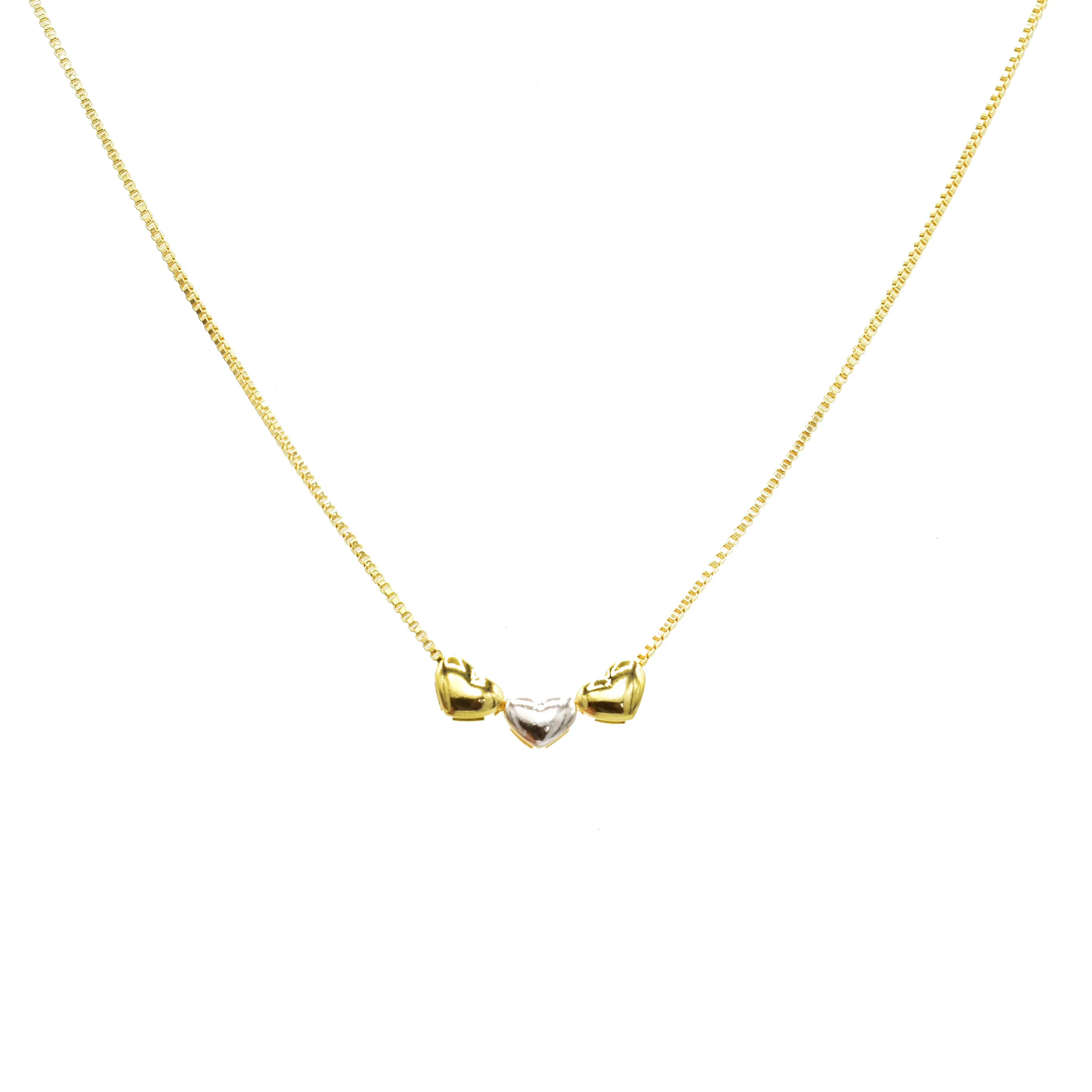 Cadena veneziana con 3 dijes de mini corazón baño de oro y de rodio de 18k con hipoalergénico. Tamaño 46 cm.